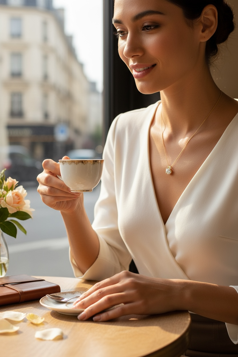 Descubre el Collar Eterno Brillo, una joya que captura la luz y la transforma en elegancia.