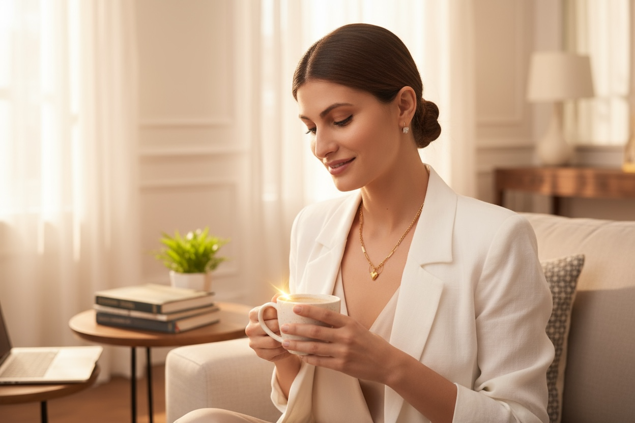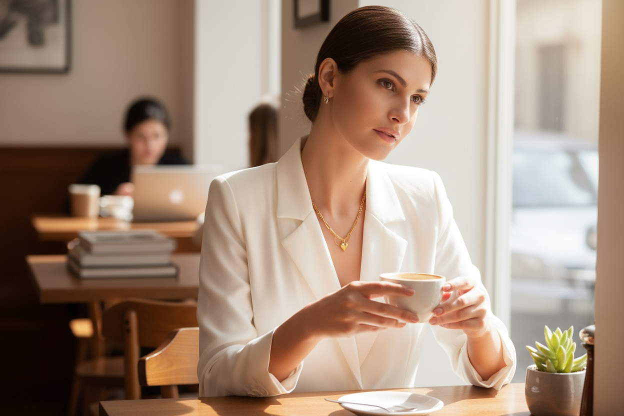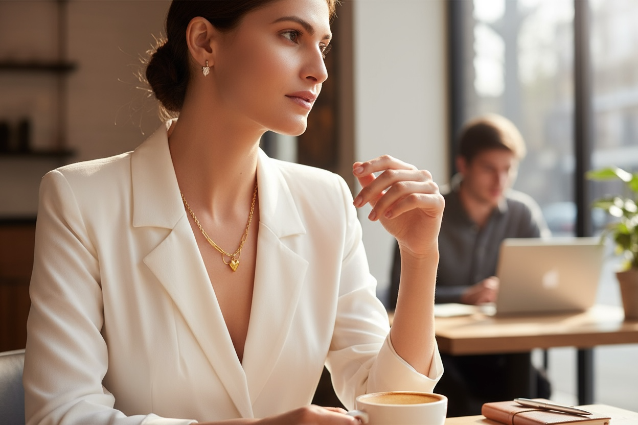 Cada detalle, desde los eslabones modernos hasta el colgante central, evoca una feminidad poderosa, segura y delicada. Perfecto para elevar cualquier outfit —desde una cita romántica hasta un look casual chic.