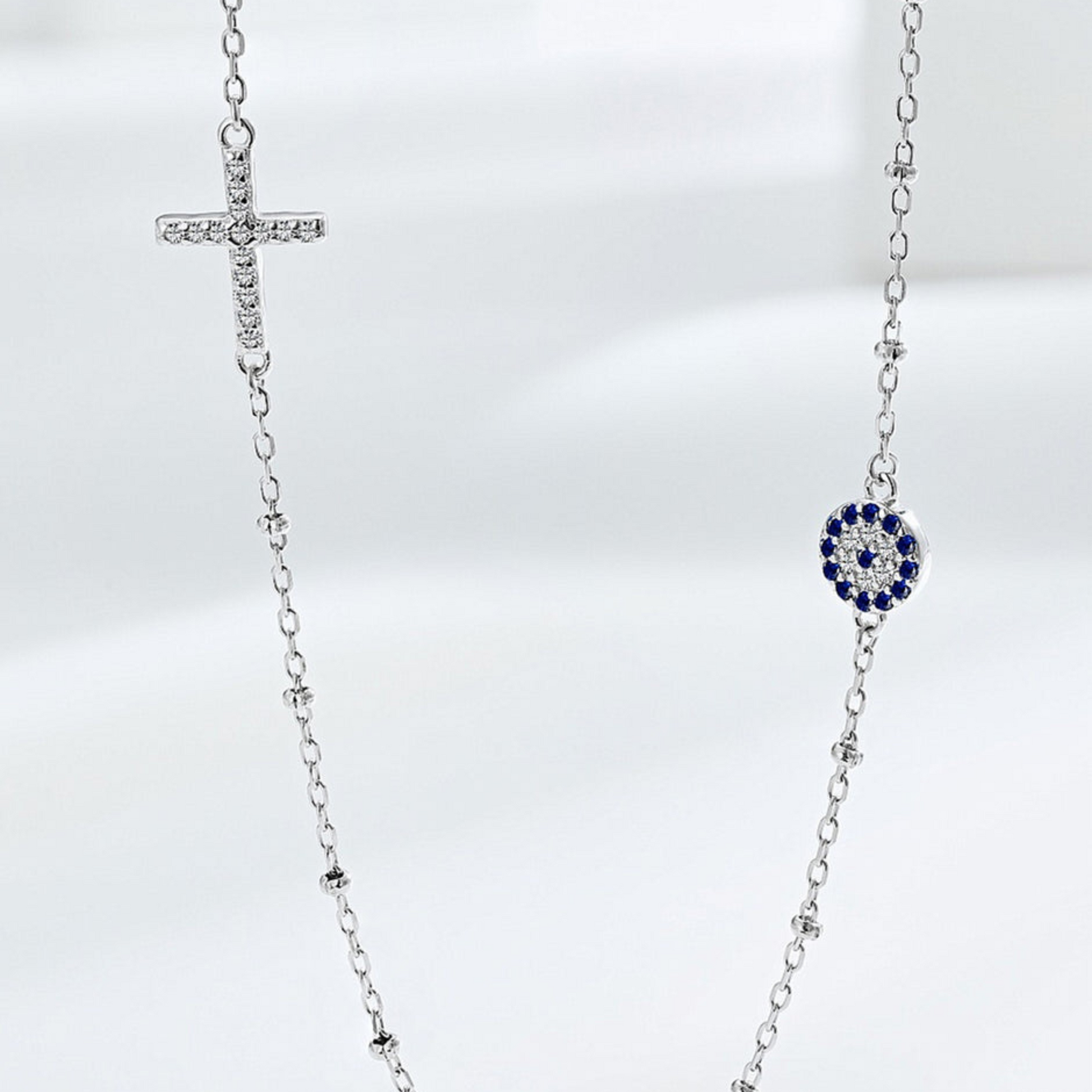 El Collar Ojo Azul & Cruz en Plata 925 es más que un accesorio: es un símbolo de protección y elegancia. El delicado ojo turco, reconocido por atraer la buena energía, se une a la cruz lateral, creando un diseño moderno y con intención espiritual.