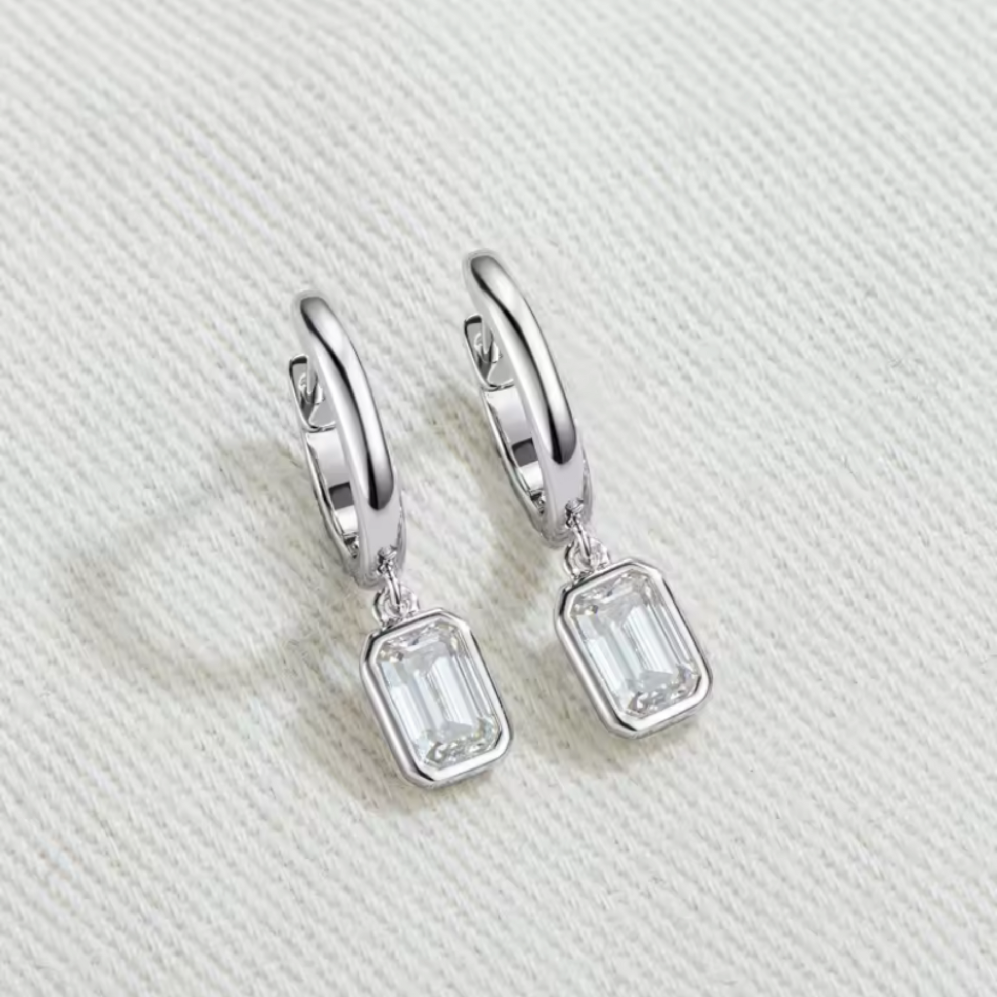 Hay joyas que acompañan momentos y otras que los convierten en memorables. Estos pendientes de moissanite, con claridad VVS1 y corte esmeralda, están creados para reflejar la luz con la misma intensidad que tu presencia.