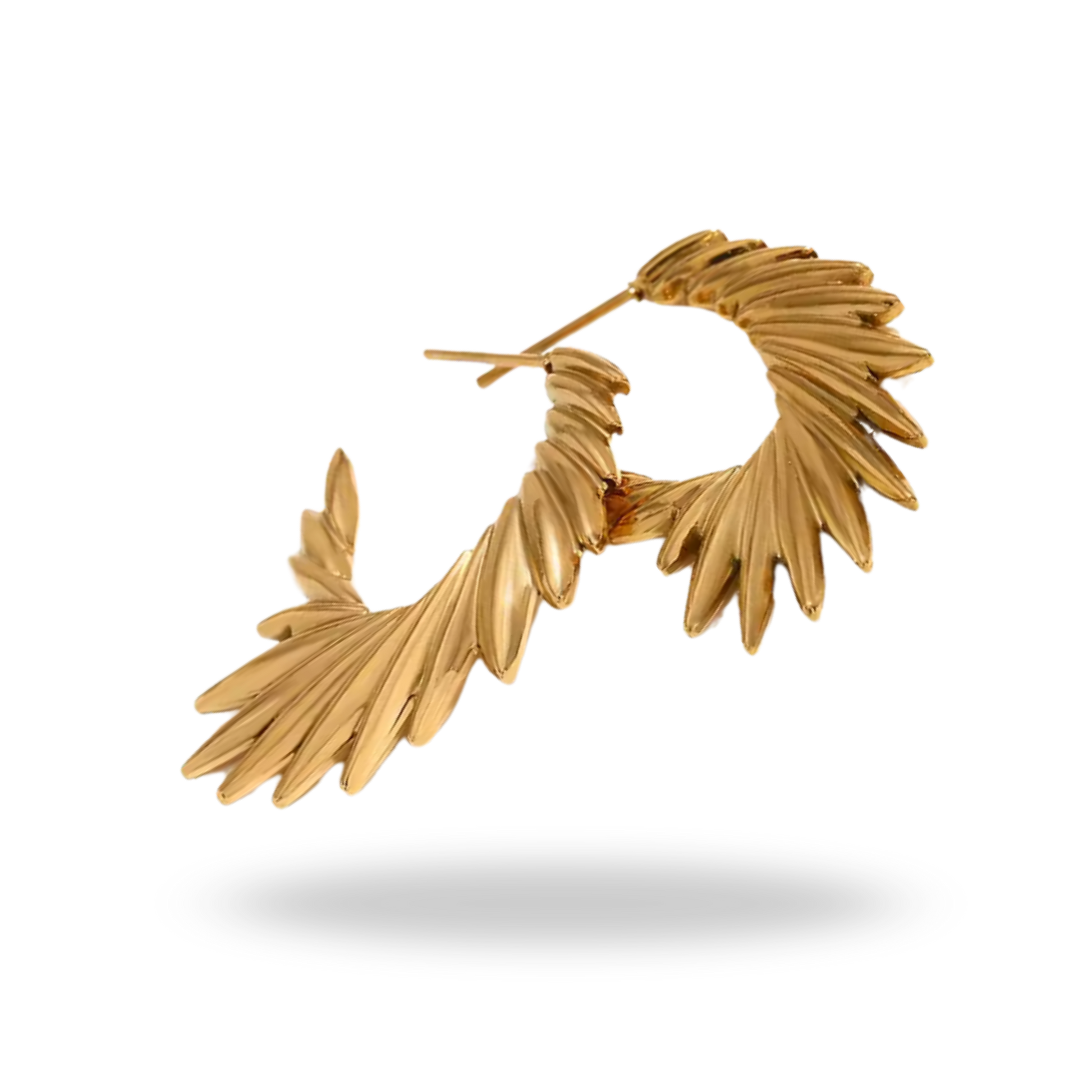 - Estos pendientes combinan la fuerza del acero inoxidable 316L con la delicadeza del baño en oro de 18K, logrando un acabado cálido y luminoso. Su forma de alas estilizadas representa libertad y poder femenino, perfectos para elevar tu estilo en eventos, cenas o el día a día. Una pieza de joyería que trasciende tendencias y se convierte en un esencial del joyero femenino.